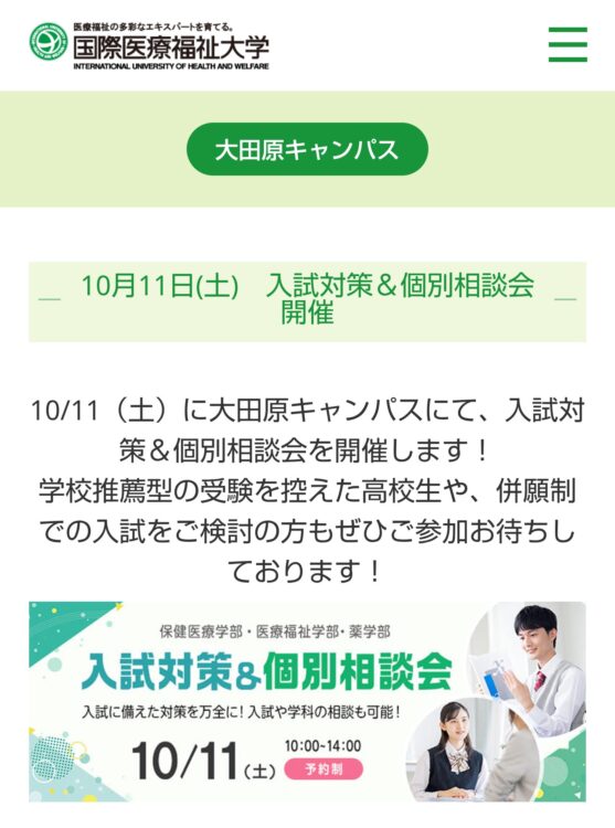 明日は国際医療福祉大学大田原キャンパスのオープンキャンパス!
